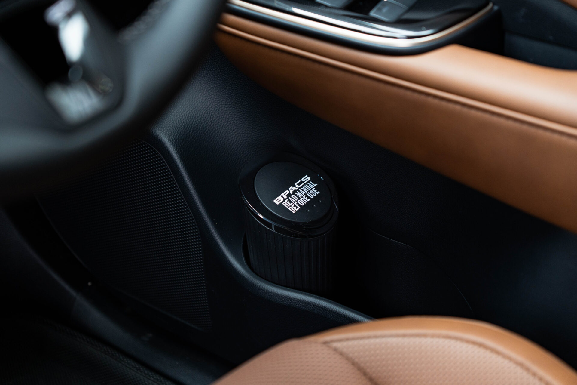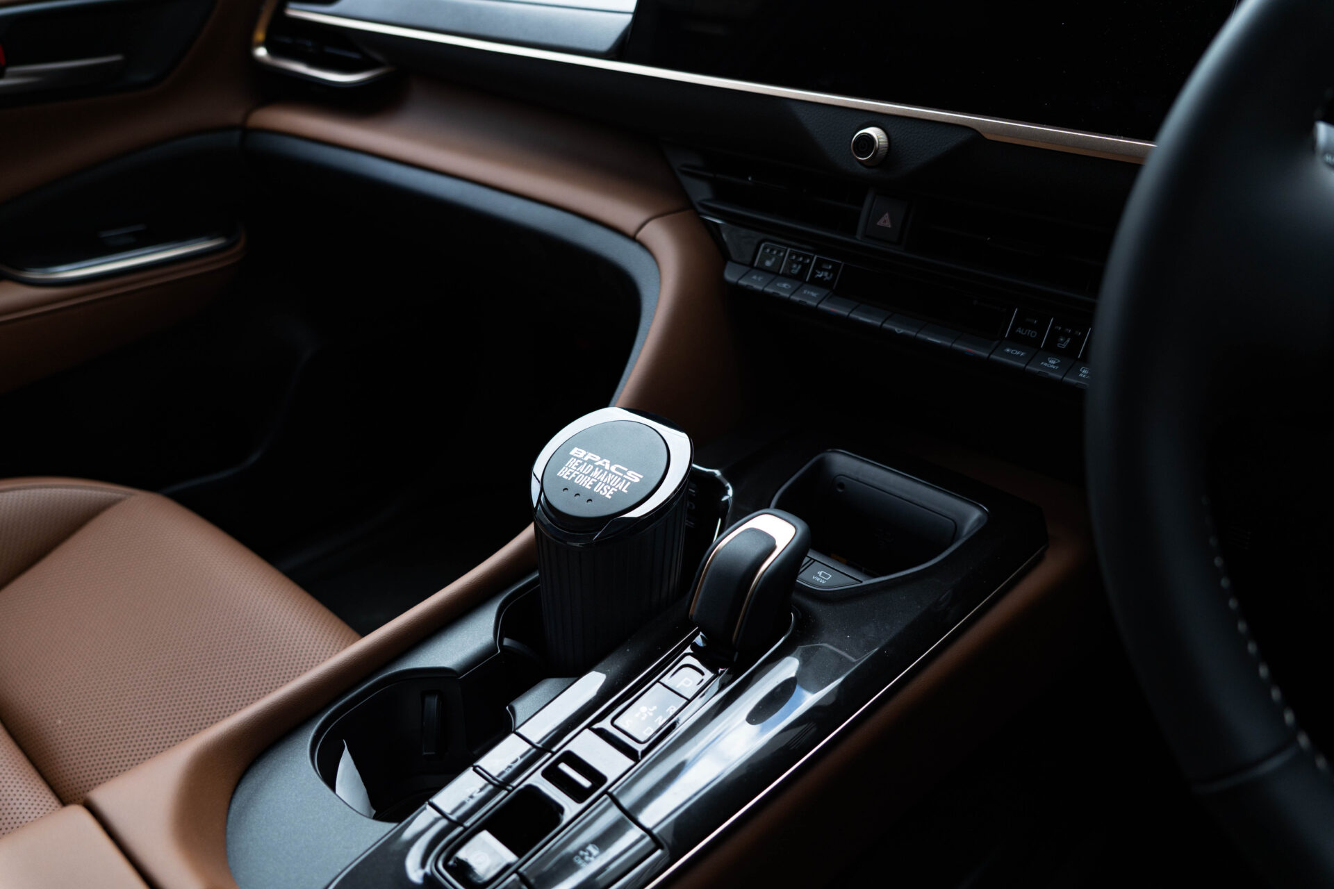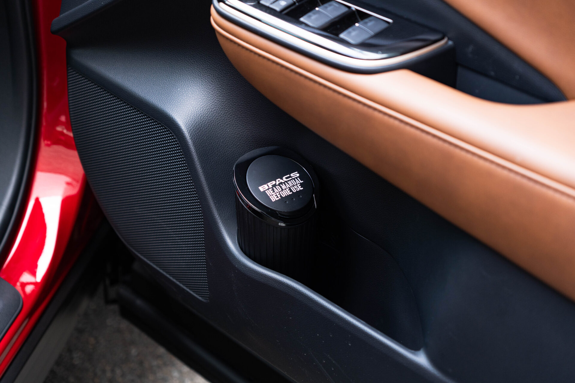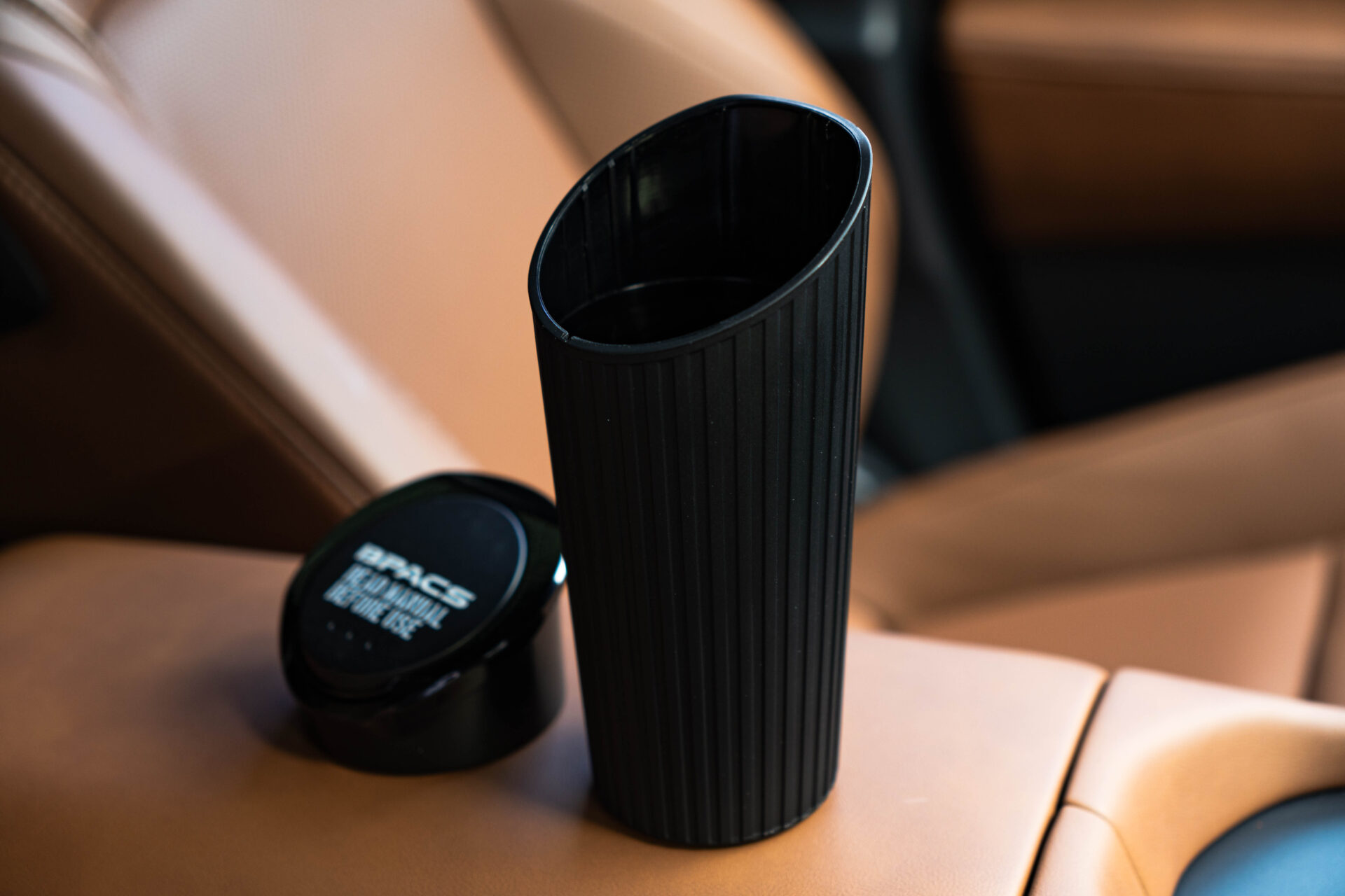 ドリンクホルダーに収まる、”ちょっとしたゴミ”を捨てるに最適なダストボックス。