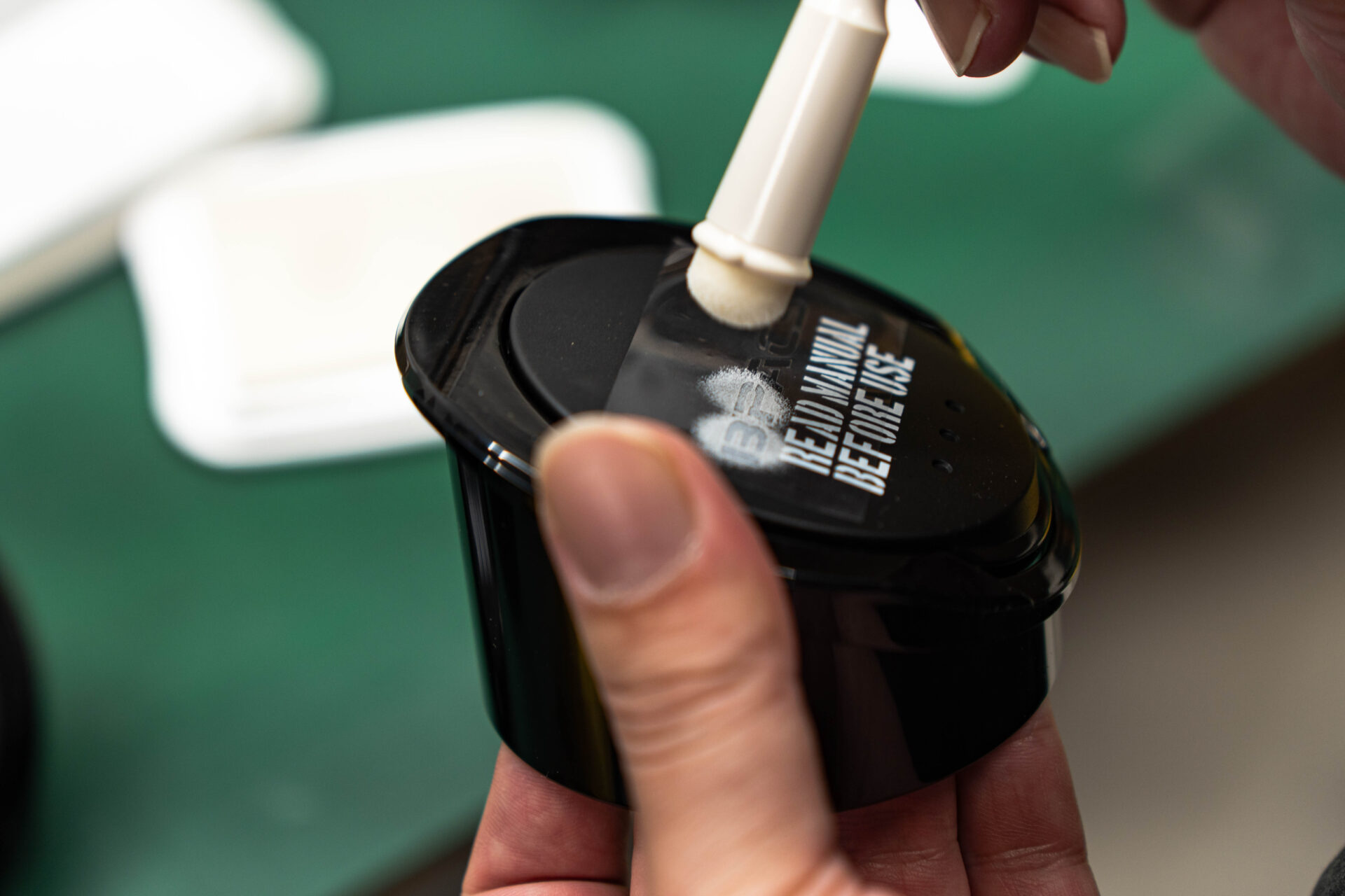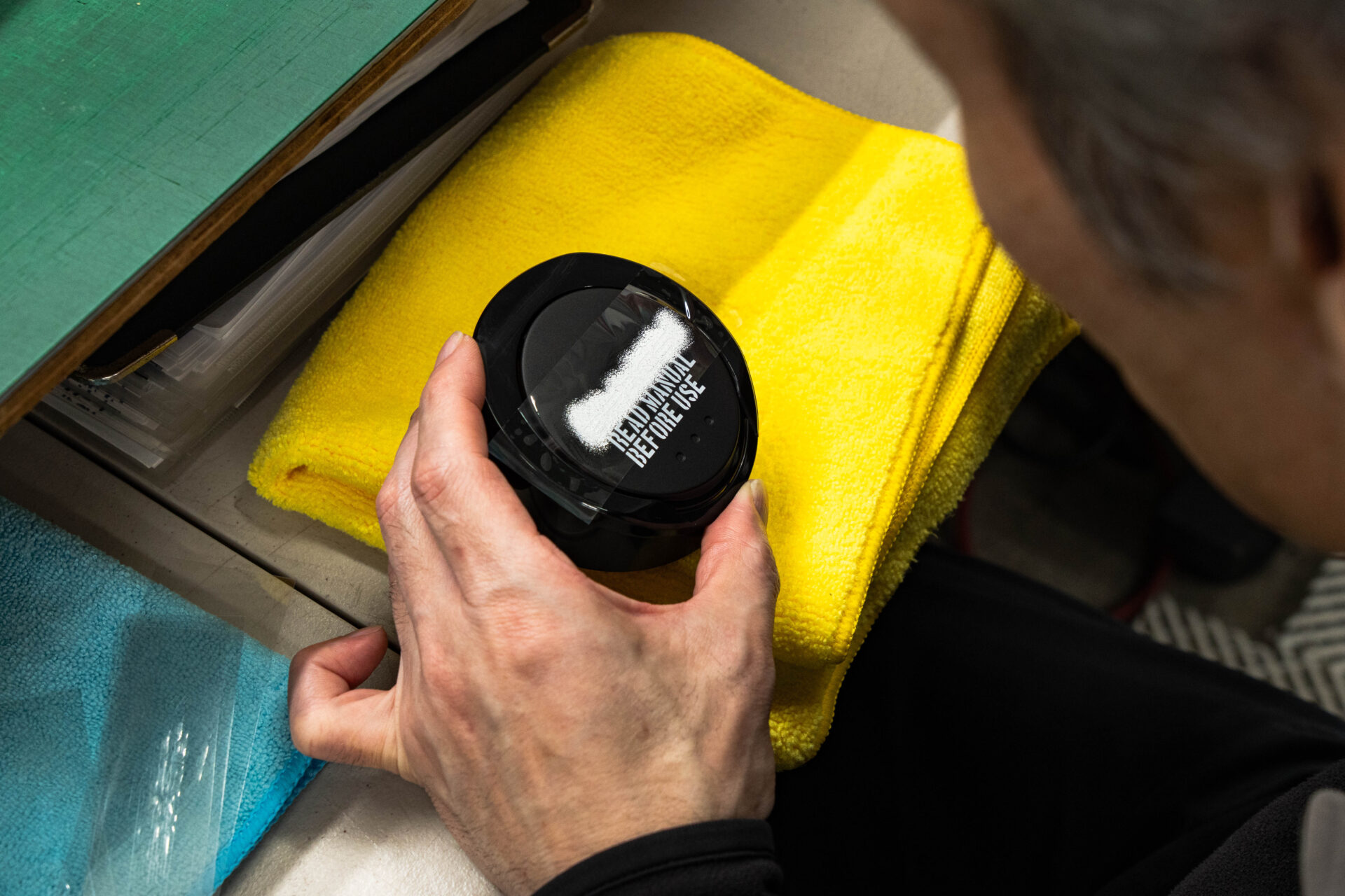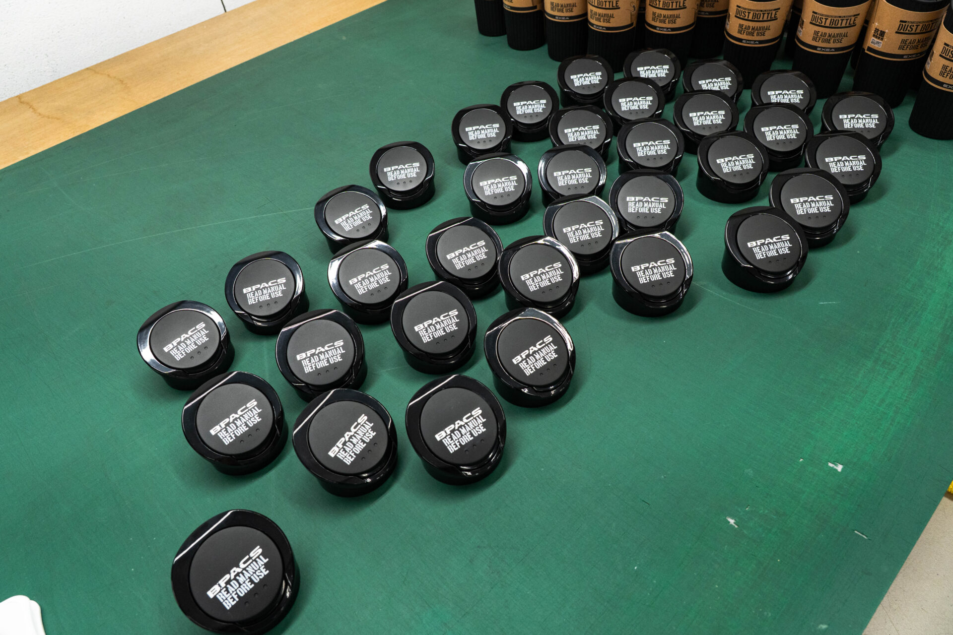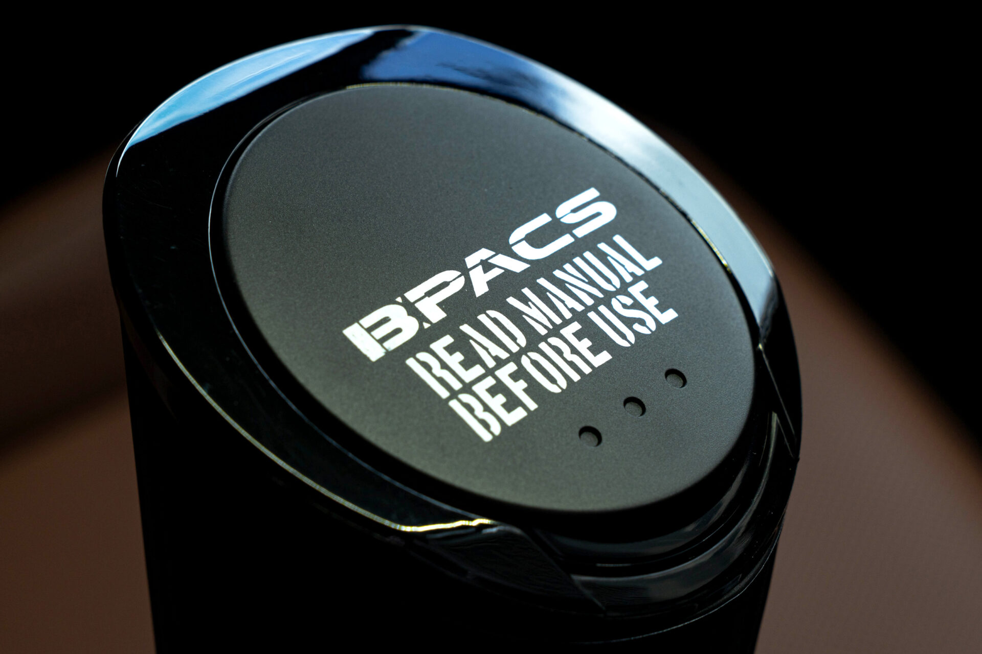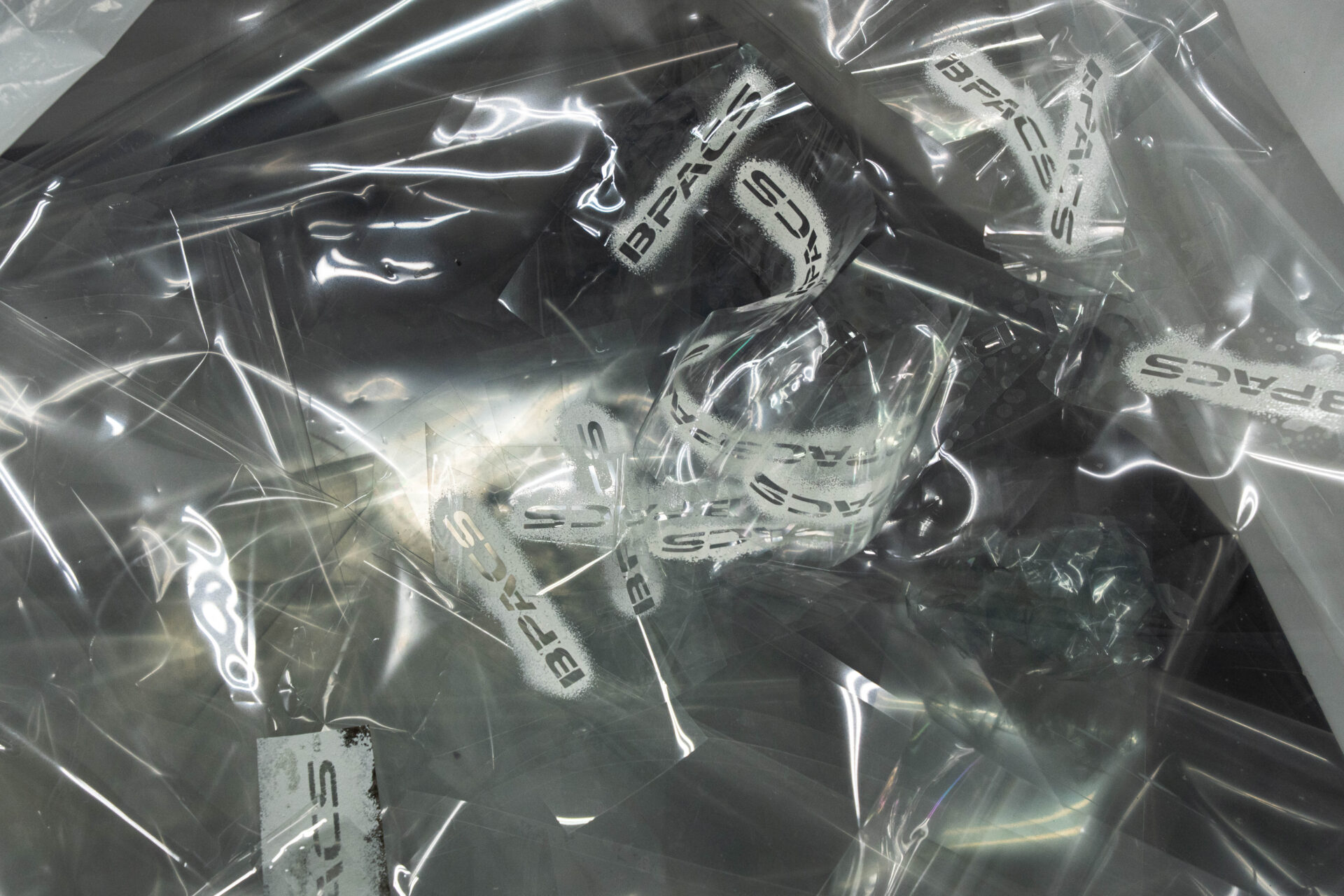 元のステンシルデザインに沿ったシンプルなデザインを継承しています。B-PACSのロゴはスタッフが1つ1つ手作りしたステンシル印字をしています。