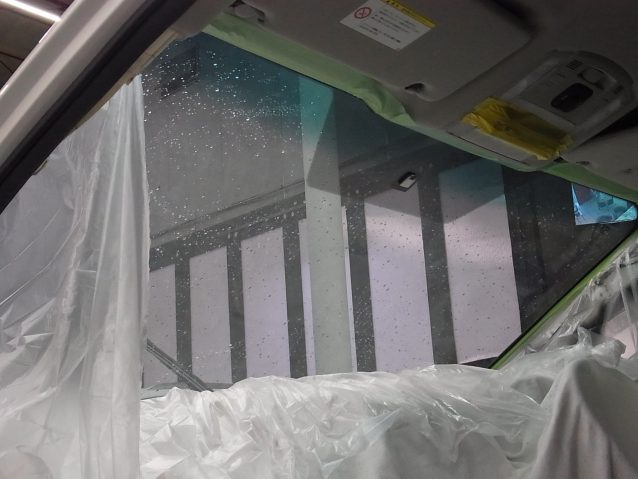 フロントガラスを施工するときは、特に念入りに養生します。