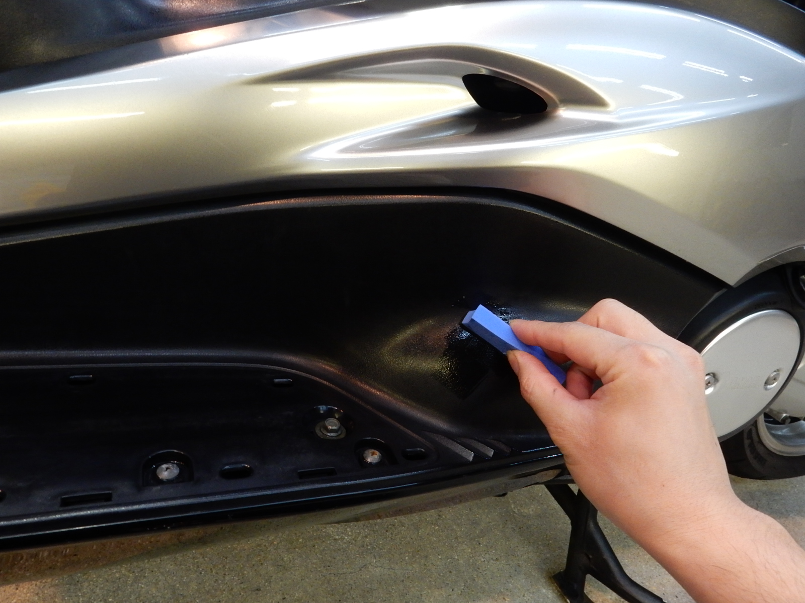 車と違いカウルが湾曲しているので慎重に磨いていきます。