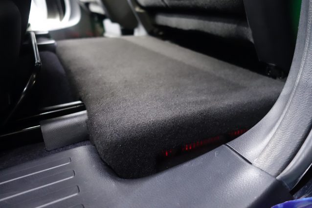 前回はシート下に収まるようにとHELIXを取付けさせて頂きましたが、後席足元なら多少スペースを犠牲にしても良いとのことだったので、右リアシート足元にドカーンとインストールです。