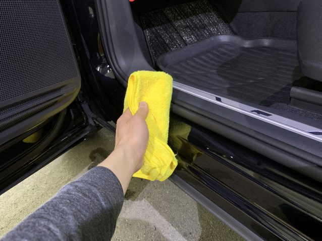 ボディへの傷を防ぐために専用の大判ウエスを使用して拭き上げます。