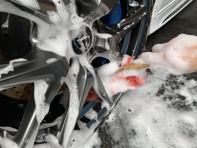 ホイールは表面はもちろん、内側やインナーフェンダーも念入りに洗います。