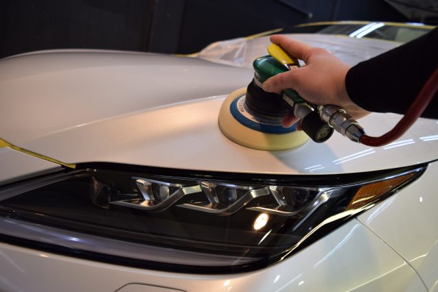 ポリッシャー・バフ・コンパウンドの数種類ある組み合わせの中からボディーの状態に合わせて磨いていきます。