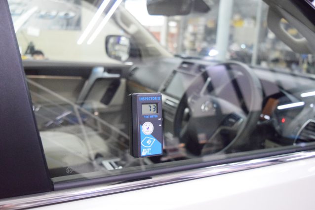 カーフィルムは道路運送車両の保安基準によって、フロントガラス、運転席・助手席のサイドガラスに貼る場合は、ガラスとフィルム合わせて可視光線透過率が70%以上が必要になります。