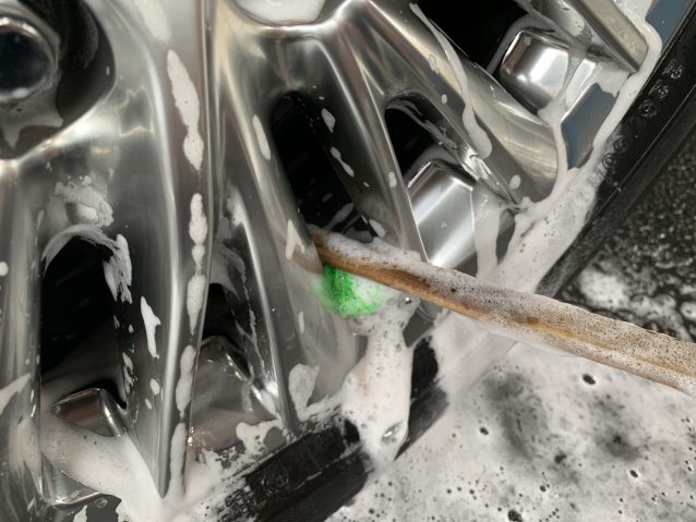 ホイールは表面はもちろん、ブレーキダストによる汚れが付着しやすい内側や、泥汚れが気になるインナーフェンダーなど普段なかなかお手入れしにくい部分も念入りに洗います。