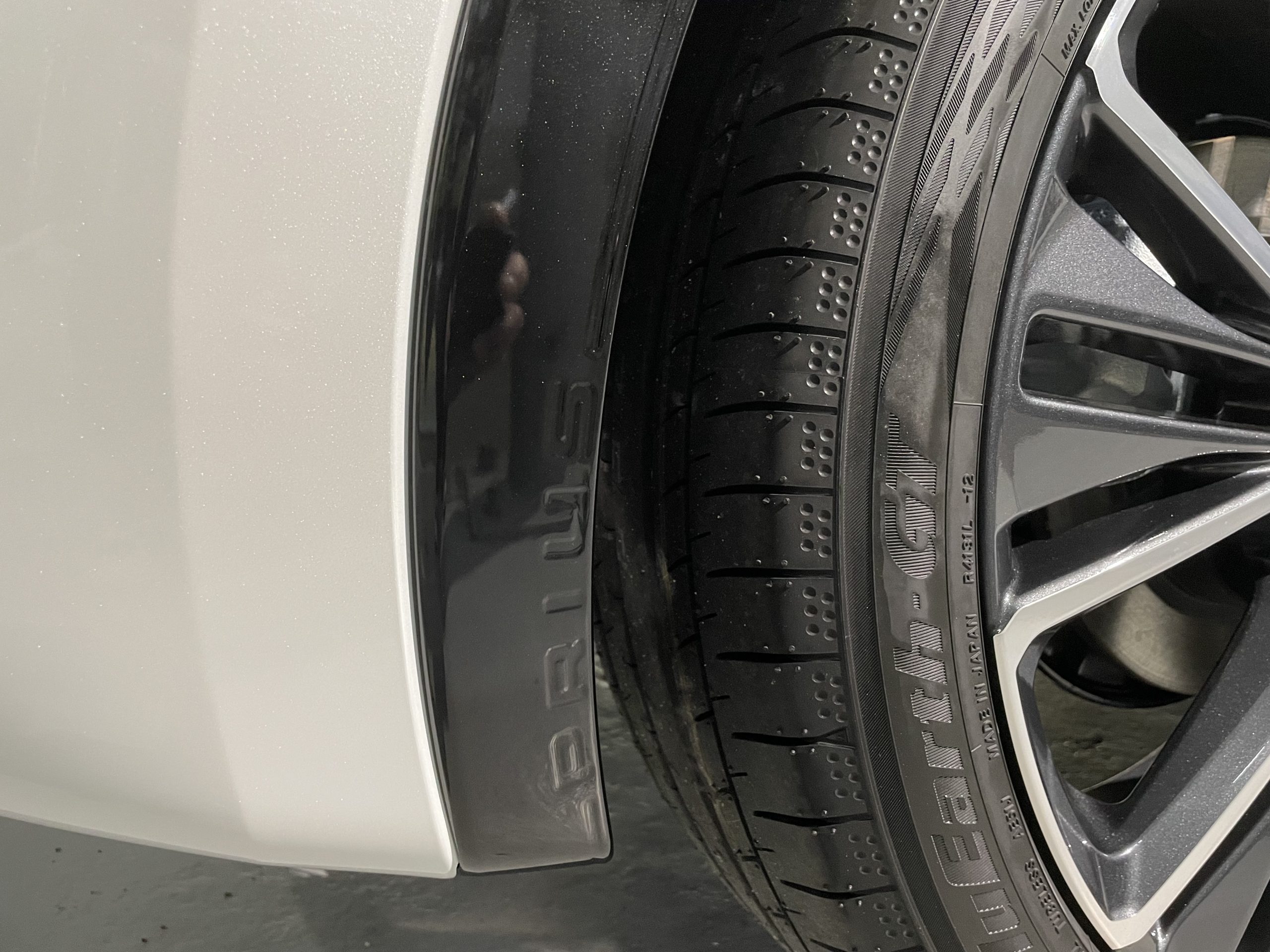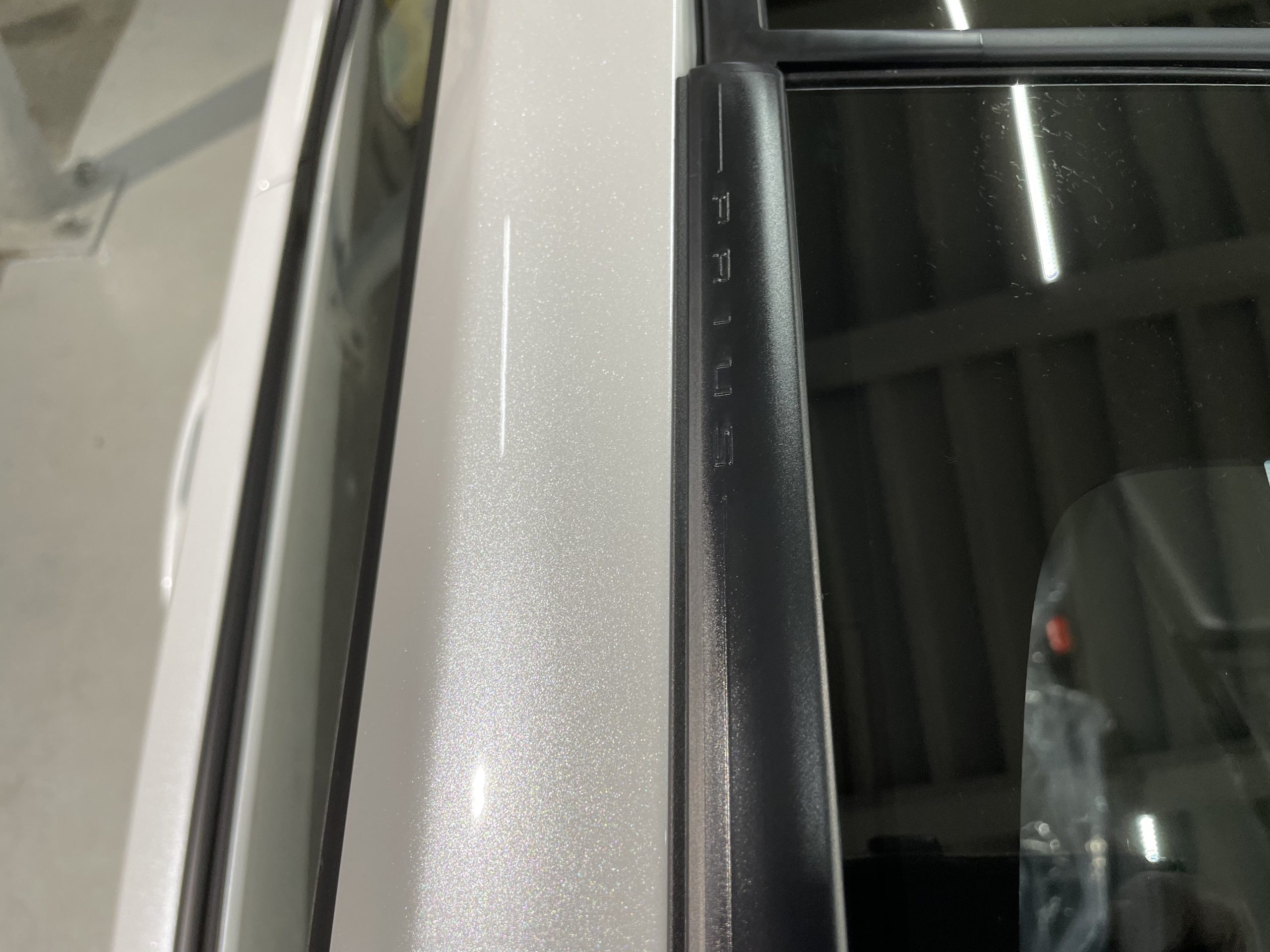 ホワイトパールの磨き作業は、キズが目立ちにくいのが特徴にプラス、パール塗装の光の乱反射でさらに、キズが目立たないのがホワイトパールで、屋外で磨き作業するのであれば、光が一定ではありません。朝~昼はキズが見えても、夕方~夜はキズが見えない。作業効率も悪い。それでは、綺麗に磨けないです。屋内で時間関係なく、一定の光で、特殊ライトによる光の波長によってキズを浮かび上げ丁寧に磨き作業を終えると見違えるほど光沢や艶が発揮します。