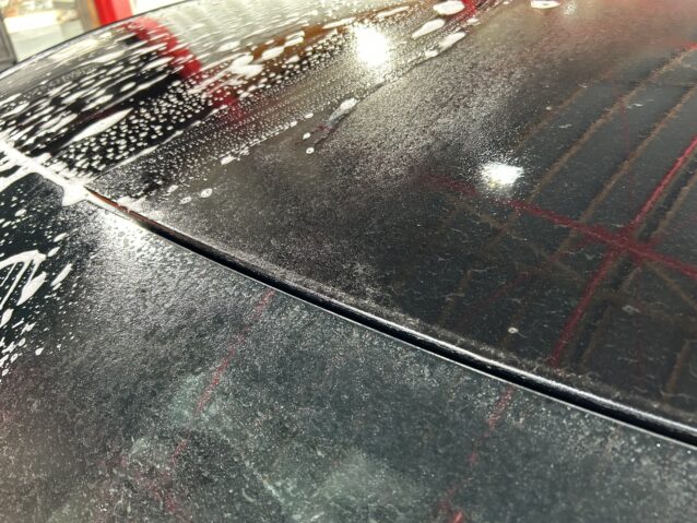 花粉と黄砂が蓄積した車を洗車したときの画像です。