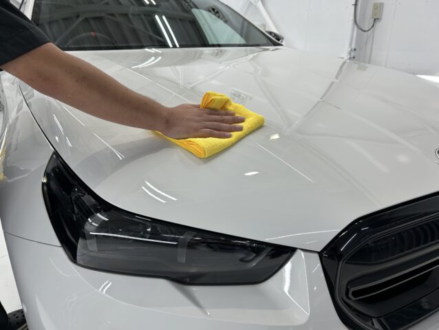研磨と同じくコーティング剤の塗り込み、拭き上げも専用の照明器具を使用しながらの作業となり、こちらも高い技術と知識が必要な作業となります。