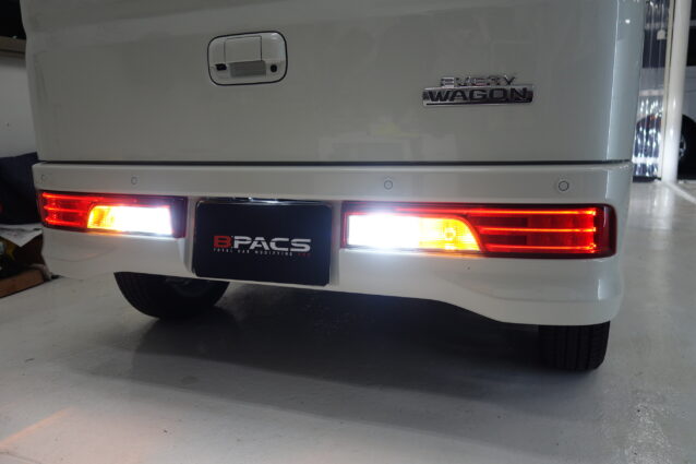 とはいってもエブリィワゴンはゲート面がフラットで取付可能な場所はリアバンパー内のナンバーポケット上部です。