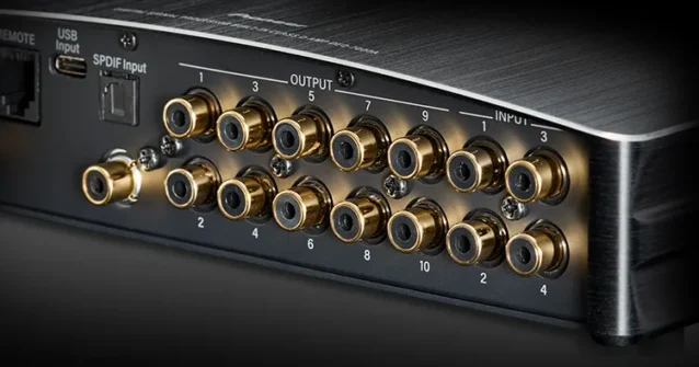 もちろんこのまま接続して音を鳴らしても良いですし、Pre接続(アンプ非介入)にして別途アンプと繋ぐことも可能、またPre接続はアンプ分の8chに加えて2ch追加された10ch構成になっていますので、拡張性や機能性が非常に高い製品となっています!