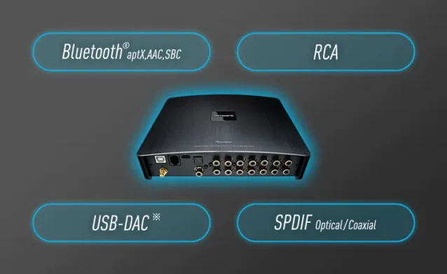 ディスプレイオーディオ・ナビを介しての再生は勿論、「音源劣化を極力除きたいから、DSPに直接繋いで再生したい!」と言った方向けに、BluetoothとUSB接続による直接再生にも対応しています。