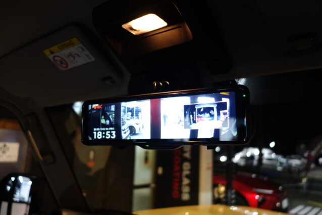 人気のデジタルインナーミラーを装着されてましたので、ノーマルのバックカメラ表示部となるルームミラーが見えない状態でした。※もちろん今回の作業を想定してこの仕様にされています。
