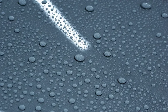 高撥水被膜は水玉が低速走行でも汚れを包み込みながら転がり落ちる特性を持ち、ボディ表面に汚れが残りにくく、洗車後の拭き取り作業も軽減されます。