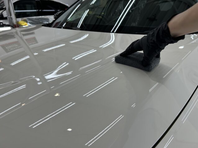 コーティング液剤の塗り込みは、細かな傷を付けてしまう可能性があったり、一瞬のことでムラができてしまう可能性もある難易度の高い工程です。