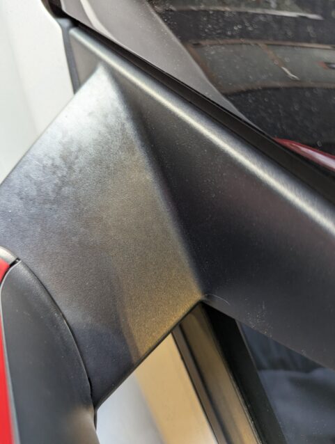 車のドアミラーの付け根辺りだったり、SUVのフェンダー等に使用されることが多い未塗装樹脂もコーティング可能でございます!
