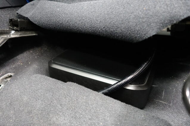 サブウーファーは薄型を活かして助手席シート下に取付けました。