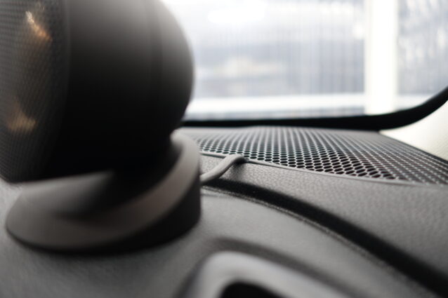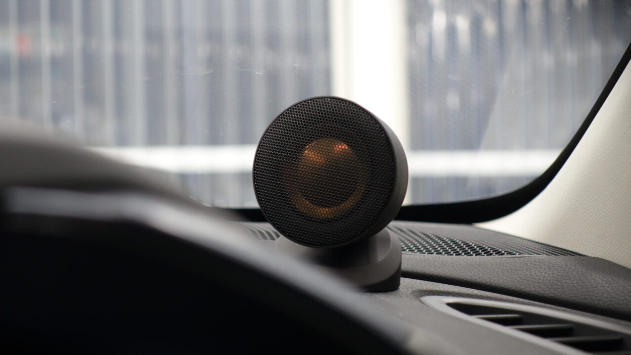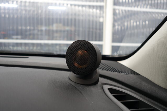 ツィーターは純正グリル内ではなく置き型マウントを使用してダッシュボード上へ↑