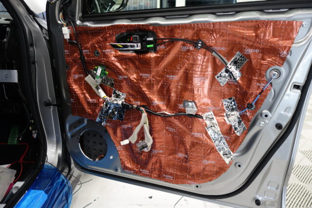 インストールに際して取付部分のフロントドアにデッドニング処理を施します。