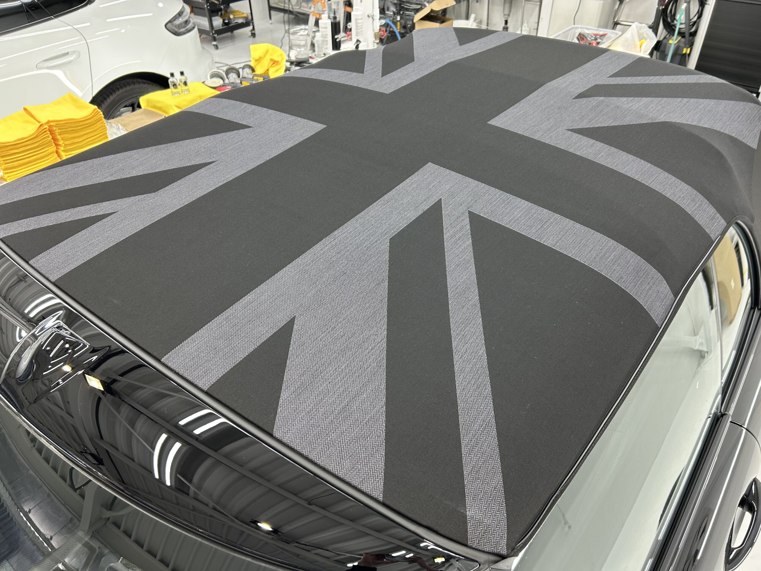 今回はコンバーチブルで幌が装着されており、おしゃれなユニオンジャックが。