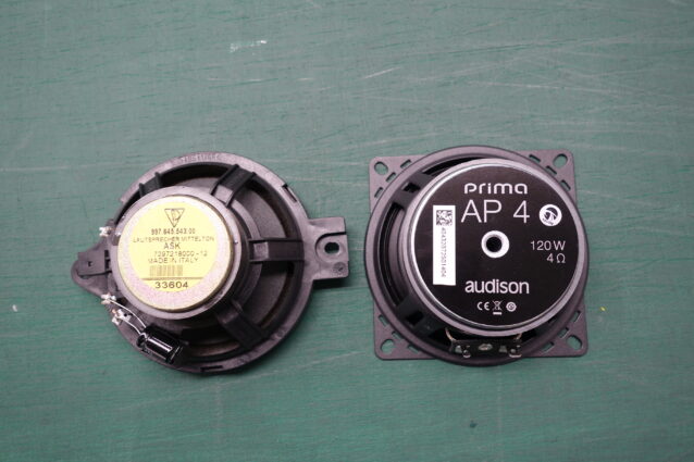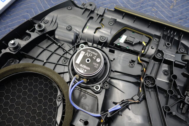 ウーファーの上部ドア中腹にあるミッドレンジには同シリーズのAP4をインストール↑
