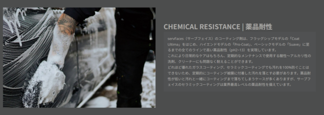(逆に多くの「ガラスコーティング」は製品紹介に薬品耐性の記載が無く、実際薬品耐性が皆無に近いというのが現実です・・・)