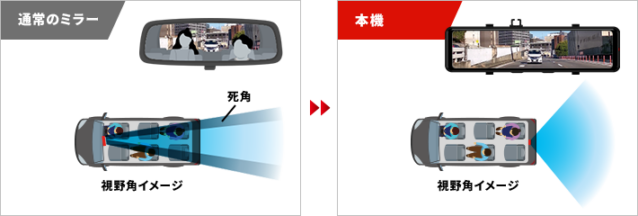 通常ミラーと同じような画角で違和感なく見ることが出来ます!