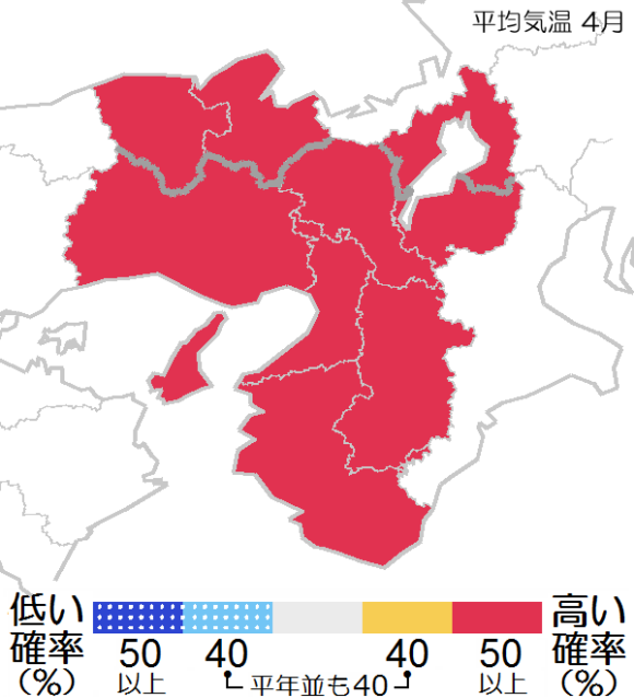 - 4月: 近畿地方では、数日の周期で天気が変わり、太平洋側では平年と同様に晴れの日が多いと予想されています。今年は4月から平年以上に気温が上がり暑い春になるそうです。
