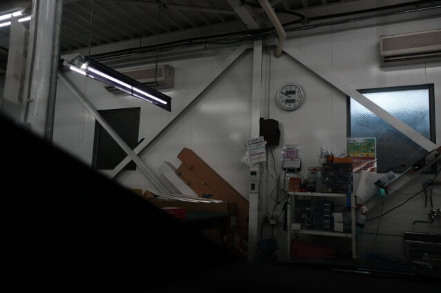 同じ位置で撮影!したかったのですが、ピット内の照明とフレームレートが合わずに黒い帯だらけになってしまうので半屋外に移動しました。