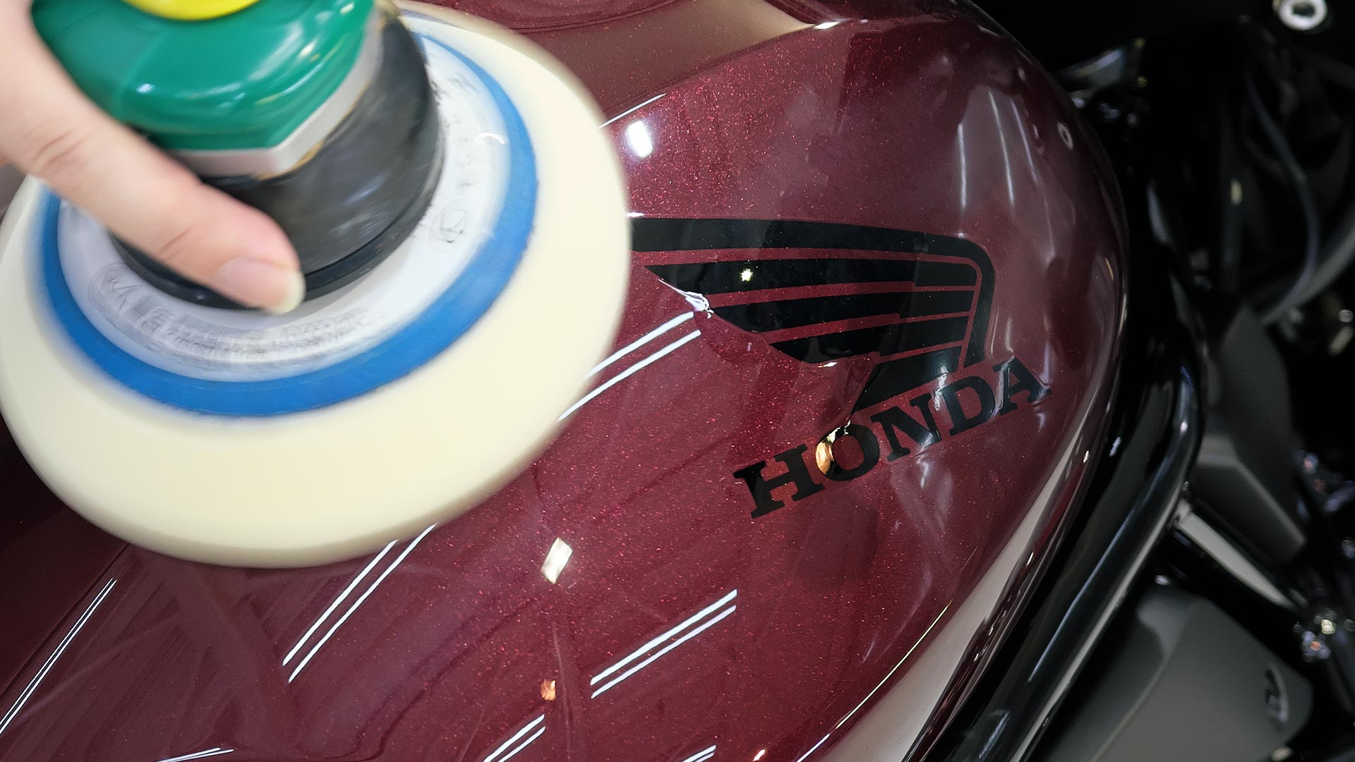 「磨き」とは、コーティングを施す前に行う作業で、塗膜にコーティング剤を定着させるための重要な工程です。施工する車両の塗膜状態は、どれひとつ同じものはありません。したがって、塗膜を平滑にしていくためのアプローチも、全く同じということはあり得ません。 ビーパックスでは、お車1台1台に合わせた下地を作るために、様々な道具を駆使し、何段階にも渡って少しずつ塗装面を磨き上げていきます。