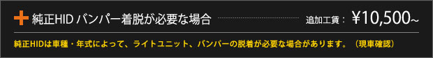 車種によって、取り付け時にバンパー着脱や加工等が必要になる場合がございます。その場合は、別途工賃の追加料金をいただきますことを、あらかじめご了承ください。追加料金は、以下の通りです。